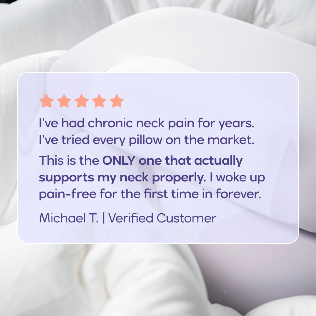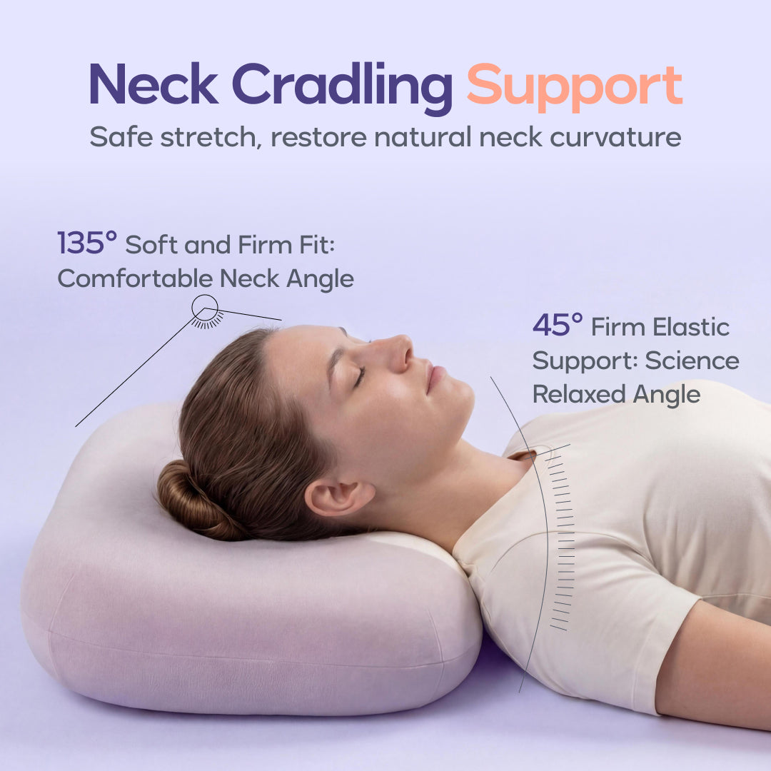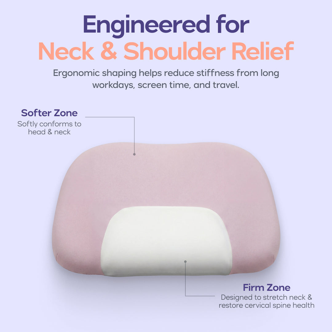 The neck pillow built to keep your spine aligned while you sleep. Firm on one side, soft on the other, flip it to find your feel and wake up without the stiffness.
