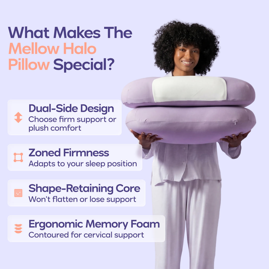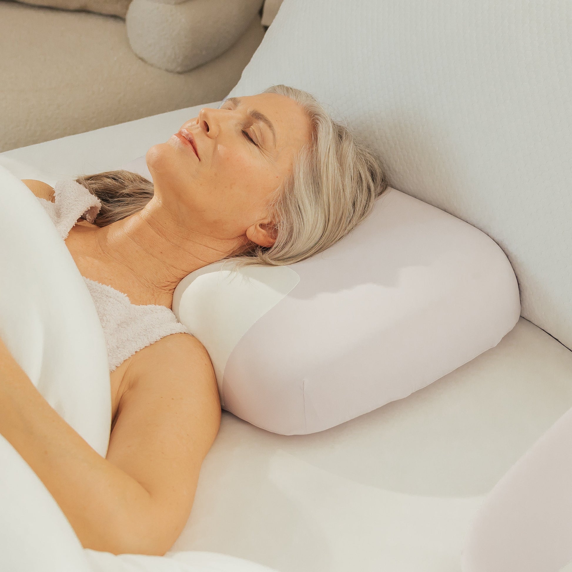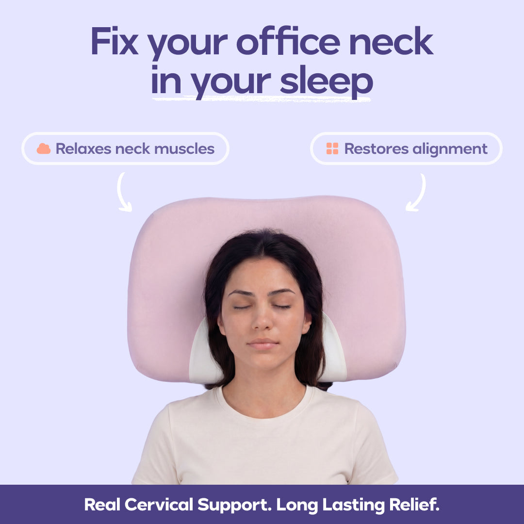 The neck pillow built to keep your spine aligned while you sleep. Firm on one side, soft on the other, flip it to find your feel and wake up without the stiffness.